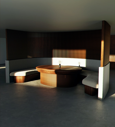 We present various design options with 3D renderings, a mood board and material selection.